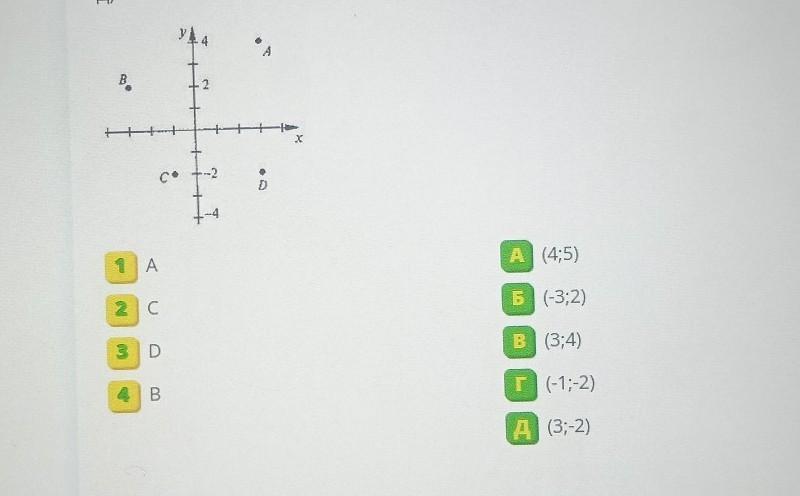 За даними рисунка встановити відповідність між точками(1-4) та їх координатами (А- Д)