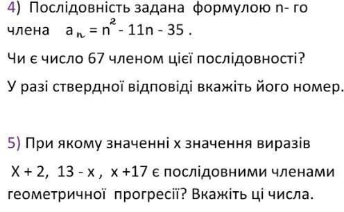 4 . aₙ = n² - 11n - 35 ; aₙ = 67 ;