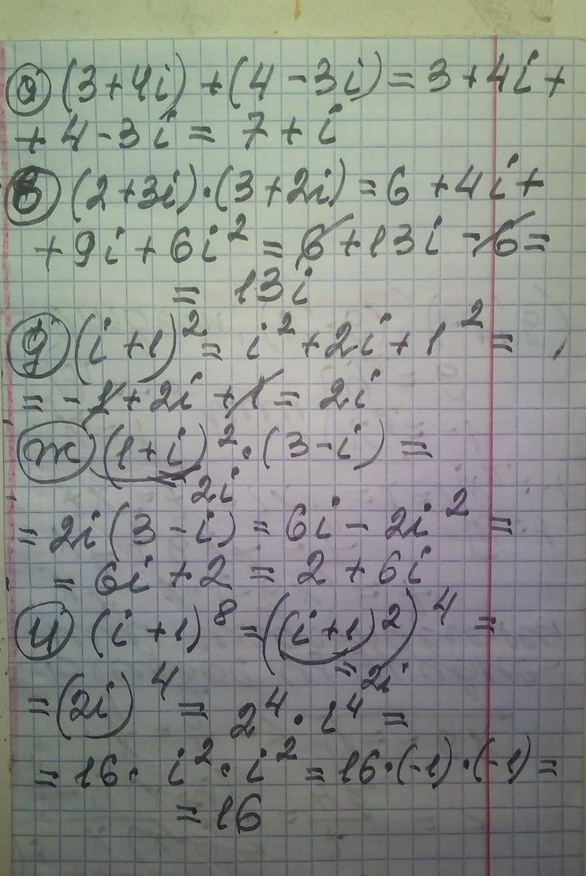 (3 + 4i) + (4 - 3i) = 3 + 4i + 4 - 3i = 7 + i