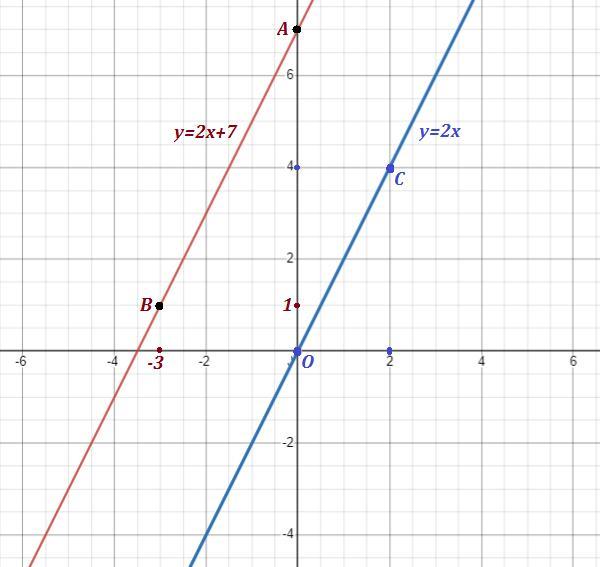Если нужно построить график прямой пропорциональности, параллельный заданной прямой, то это будет график функции у=2х . Он проходит через точки О(0;0) и С(2;4) .