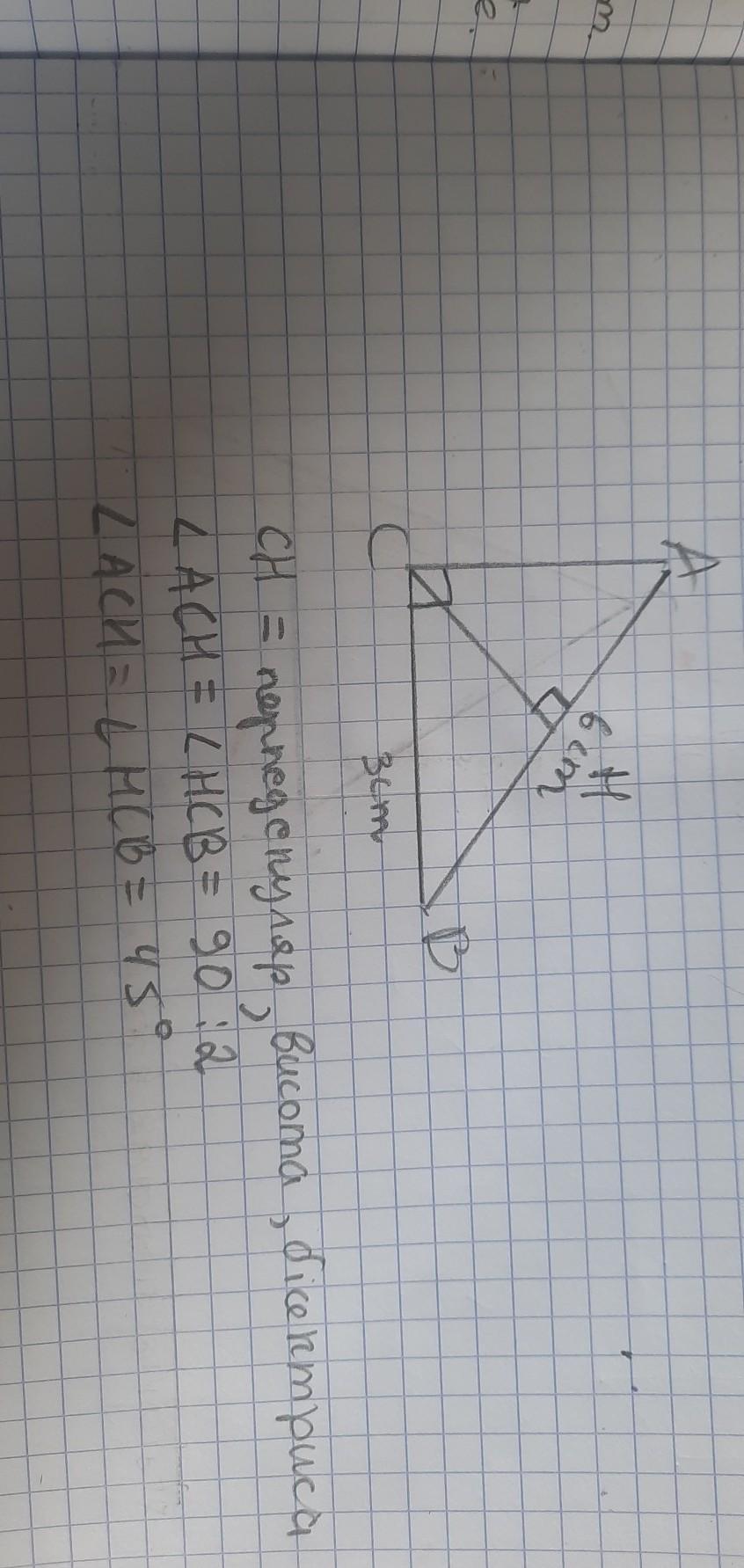 опущен перпендикуляр СН, АВ = 6 см, СВ = 3 см. Найти углы при