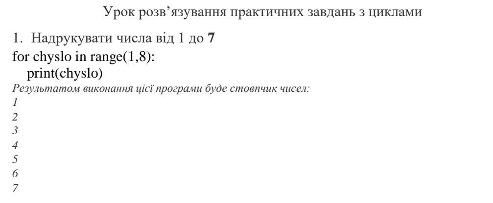 for chyslo in range(1,8):