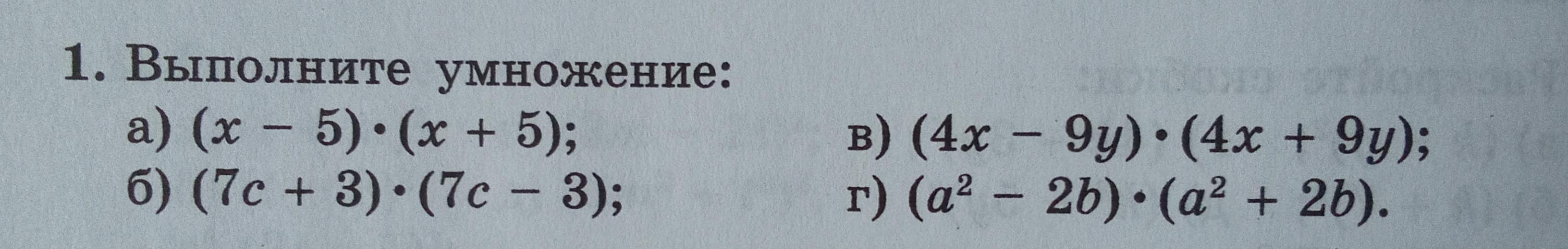 г) (а²-2b)×(a²+2b)=(a²)²-(2b)²=а⁴-4b².