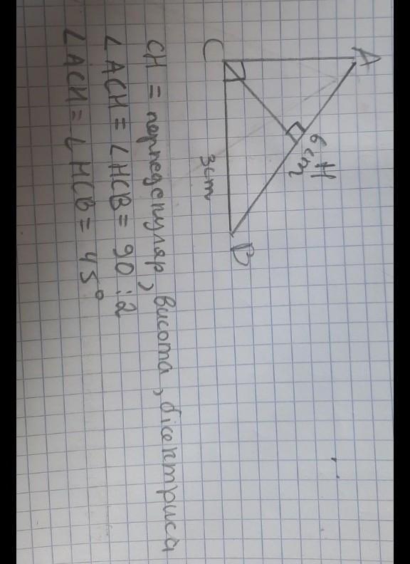 опущен перпендикуляр СН, АВ = 6 см, СВ = 3 см. Найти углы при