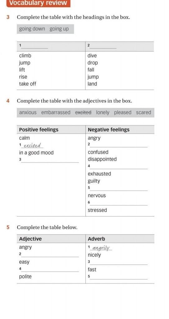 2 scared 3 pleased 4 lonely 5 anxious 6 embarrassed
