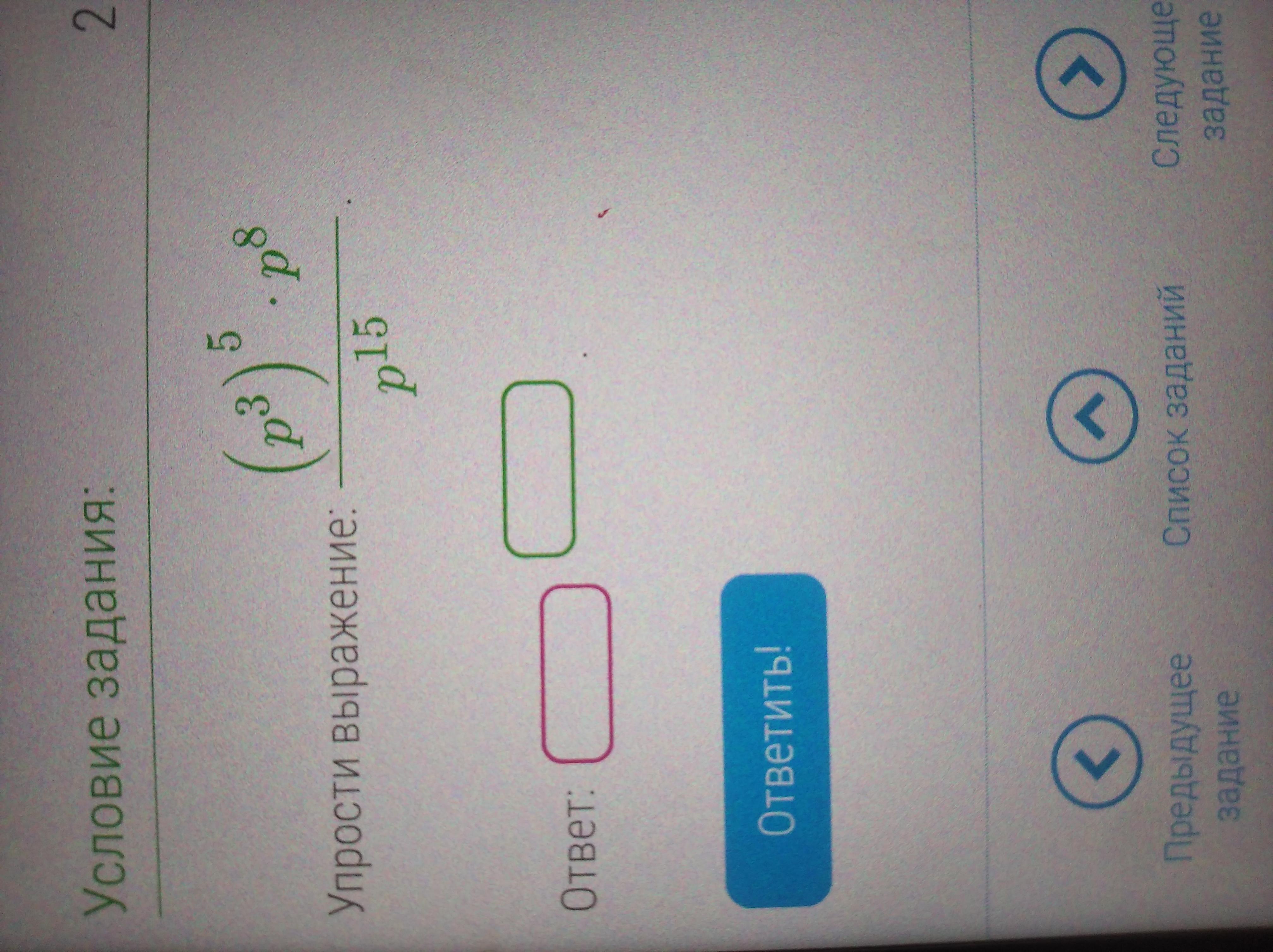 (р³)⁵ * р⁸ / р¹⁵ = р¹⁵ * р⁸ / р¹⁵ = р²³/р¹⁵ = р⁸