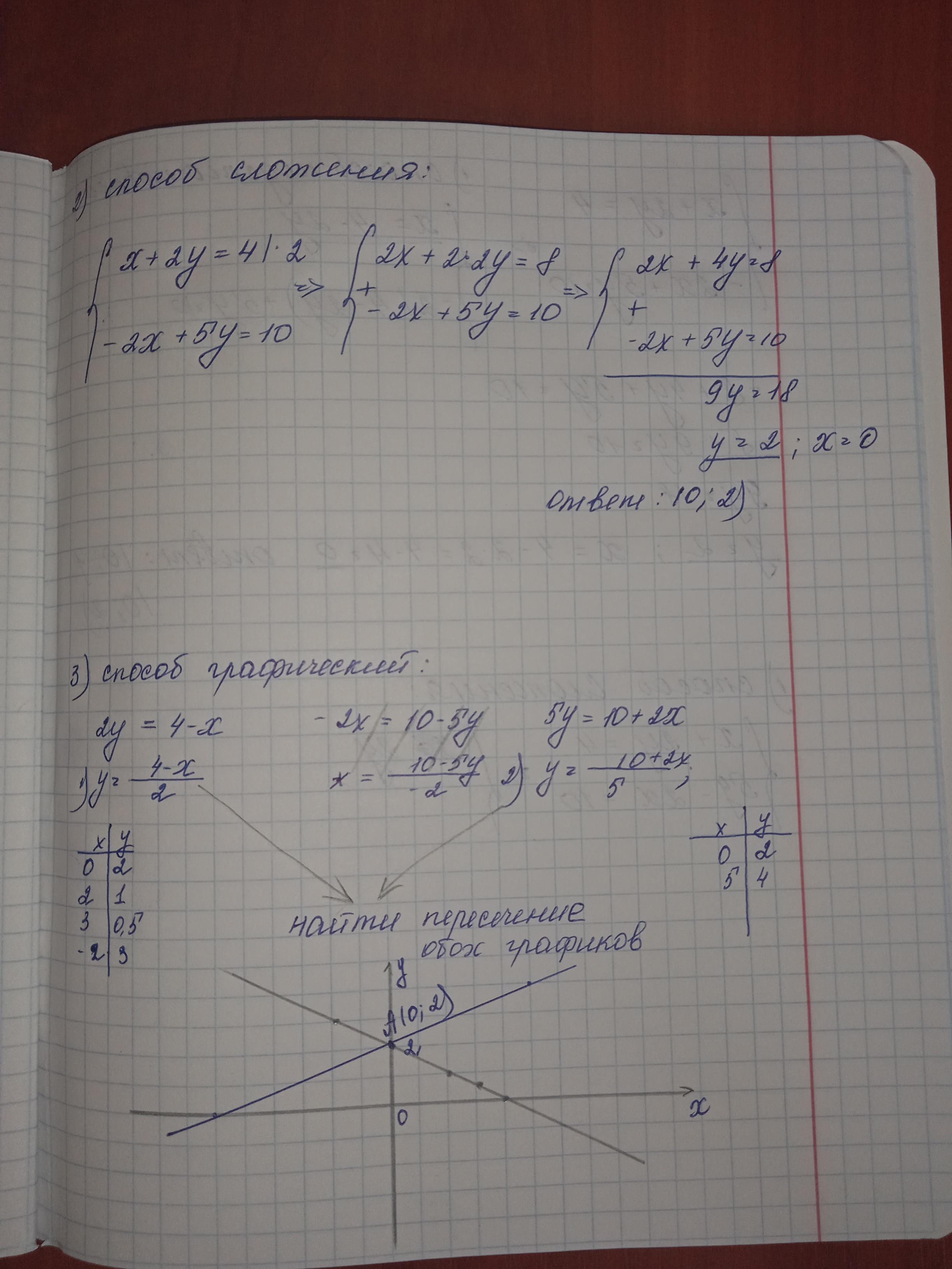 Решите систему линейного уравнение тремя способами: графическим способом, способом подстановки, способом сложения и двойного сложения.