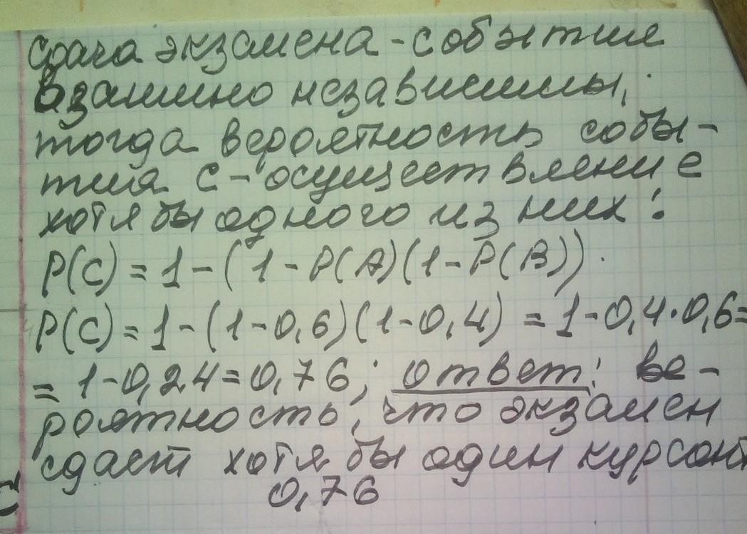 а вторым курсантом P(B)=0,4. Какова вероятность того, что экзамен сдаст