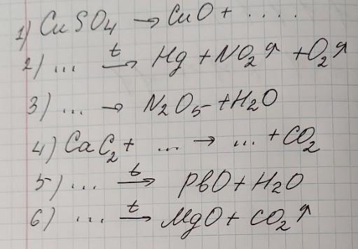ответ: 1. SO3; 2. HgNO3(вроде так..); 3.HNO3; 4. O2; 5. OH2; 6. MgCO3