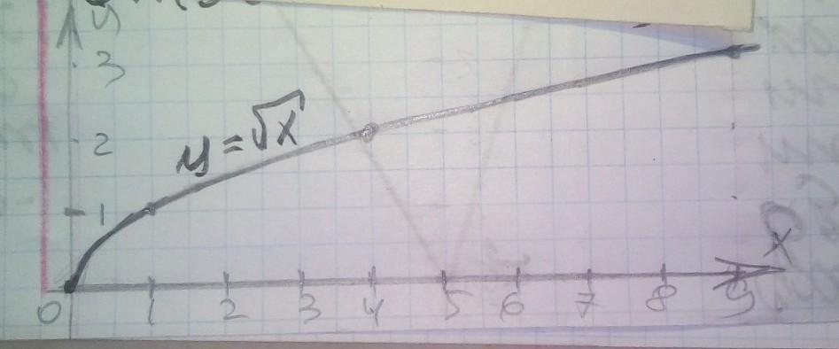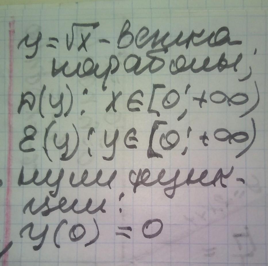 Постройте график функции у = √х. Запишите область определения, множество значений и нули функции.