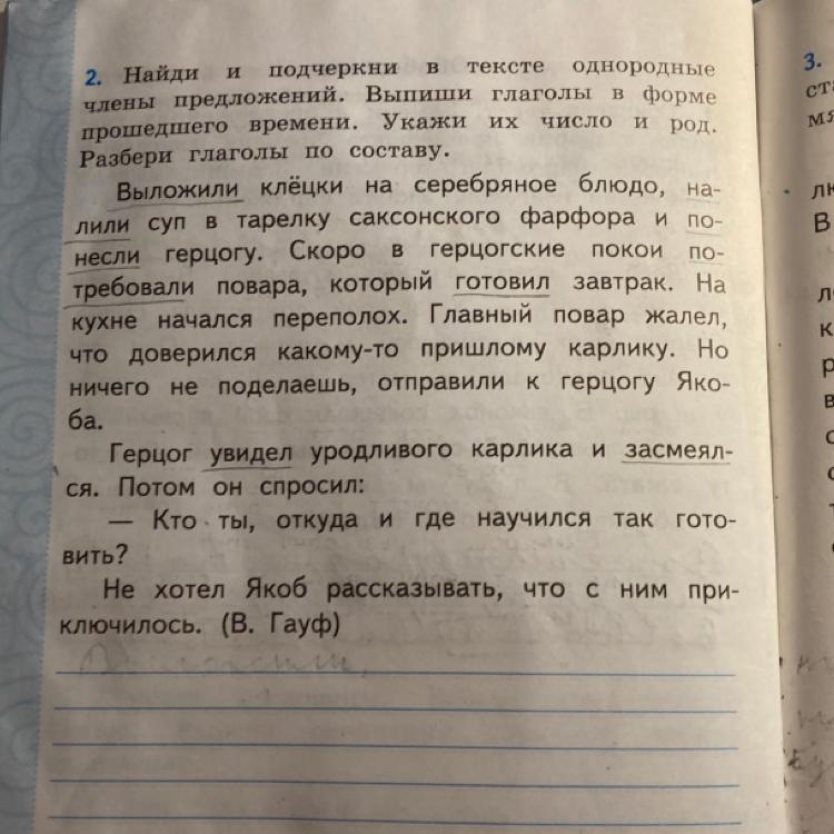выложили мн.ч. , налили мн.ч. , понесли мн.ч. , потребовали мн.ч. , готовил ед.ч м.р. , начался ед.ч. м.р. ,