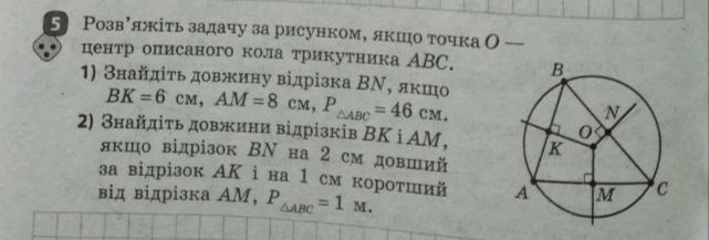 так, як радіус , перпендикулярний до хорди, ділить хорду навпіл, то AK=KB, BN=NC, AM=MC, то Р=2(BN+AM+AK)