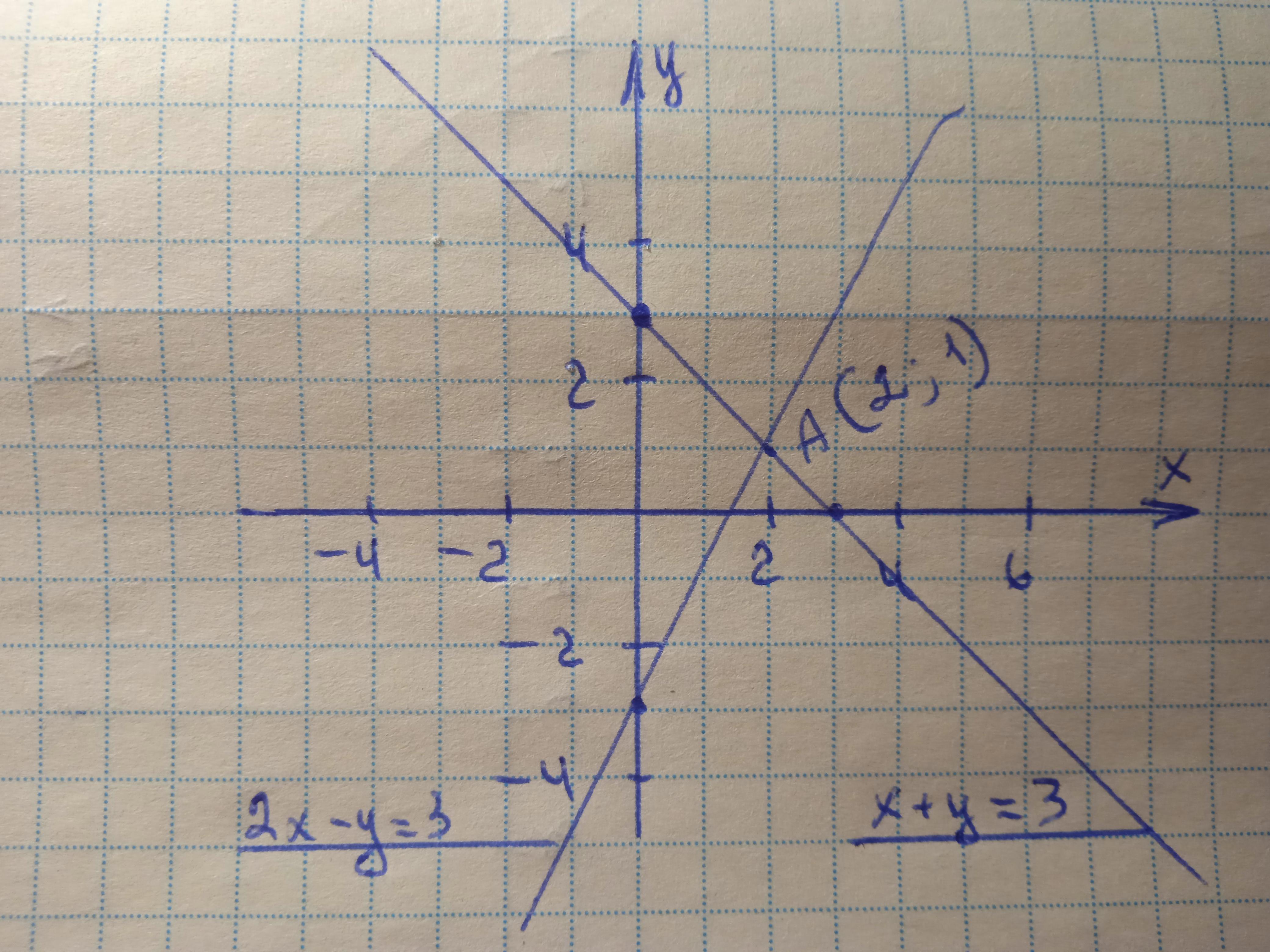 х+у=3; у=3-х; х=0 у=3; х=3 у=0