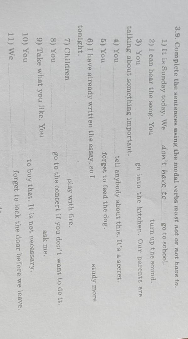 2 - must 3 - can 4-must not 5 - would 7 - can't 8- should not 9-can 10-can