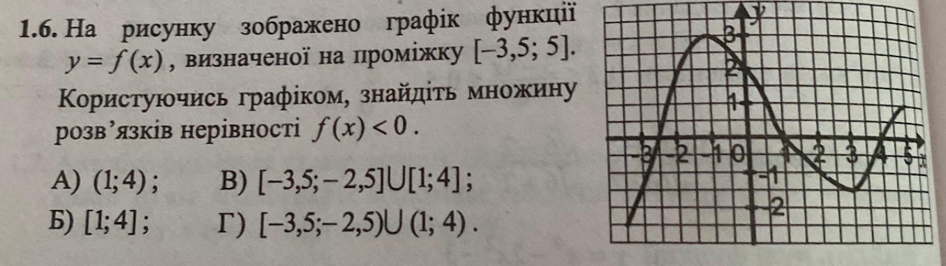 Користуючись рисунком, знайдіть множину розвязків нерівности f(x)<0