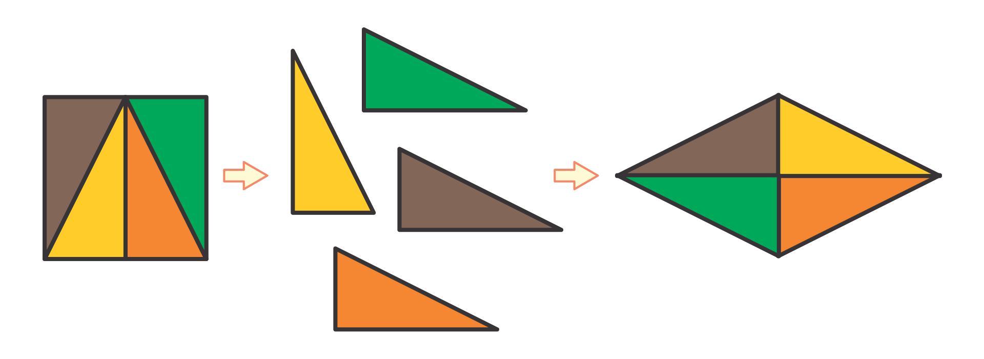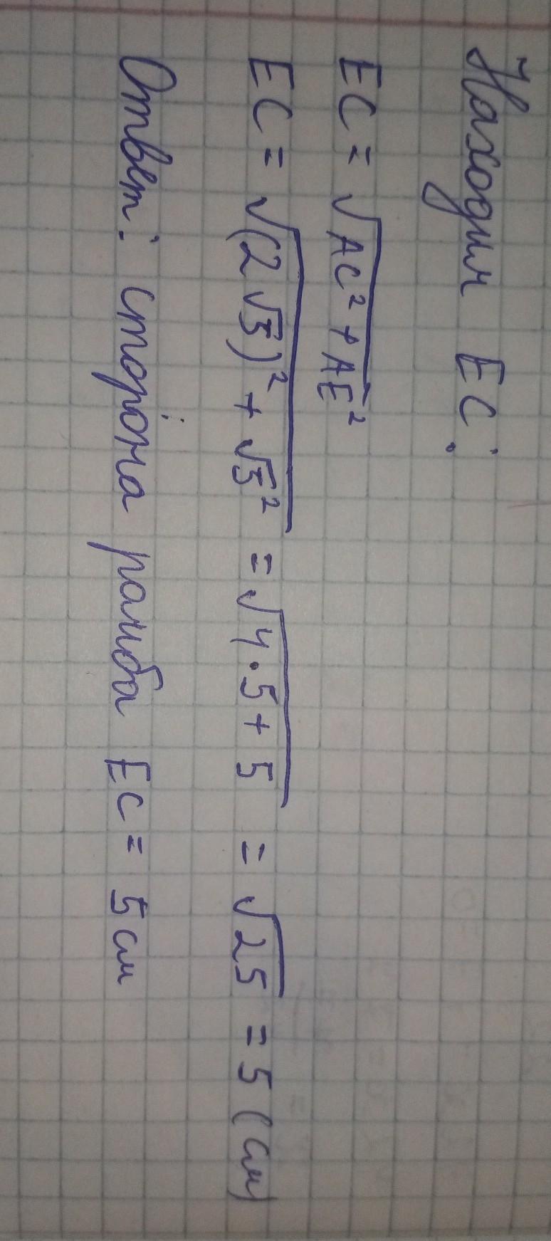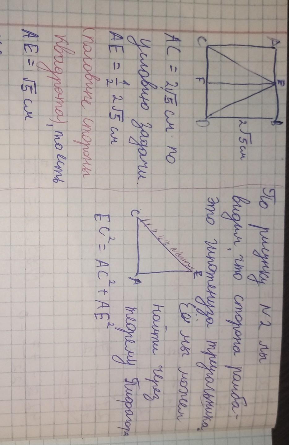 Квадрат был разделен на четыре равных треугольника и из них был сделан ромб. Длина стороны квадрата 2√5 cm. Какова длина ребра ромба?