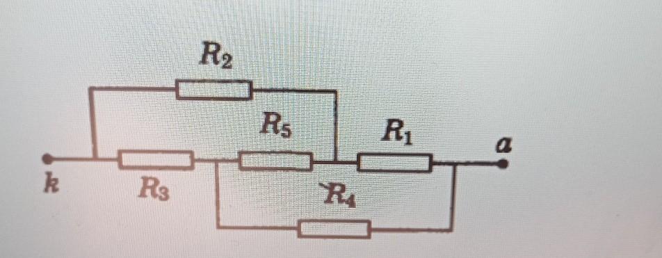 Наконец, считаем R1,2,3,5+R4.Они соединены параллельно, значит Rобщ=0.625R