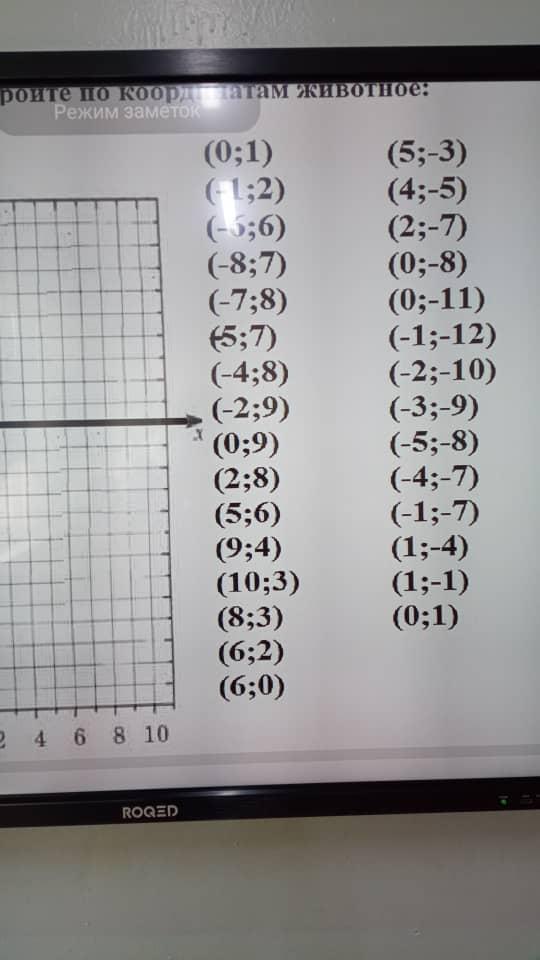 це легко. перша цифра у дужках це координата Х, а друга У. от і шукай. Наприклад, перше по іксах 0, а по ігриках 1, отже крапка буде на координатній осі ігриків, на позначці 1. Так і далі...