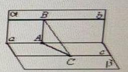 Кут ВАC — лінійний кут двогранного кута з ребром а, що зображений на рисунку. Серед запропонованих відповідей оберіть ту, яка є правильною.а) a || b б)AB⊥a в)AB⊥b г)AC⊥c