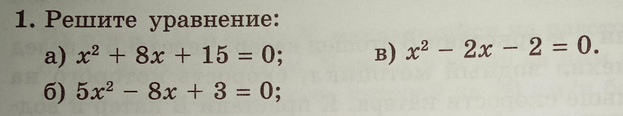 Уравнение а) решаем по теореме Виета, а уравнения б) и в) решаем через дискриминант .