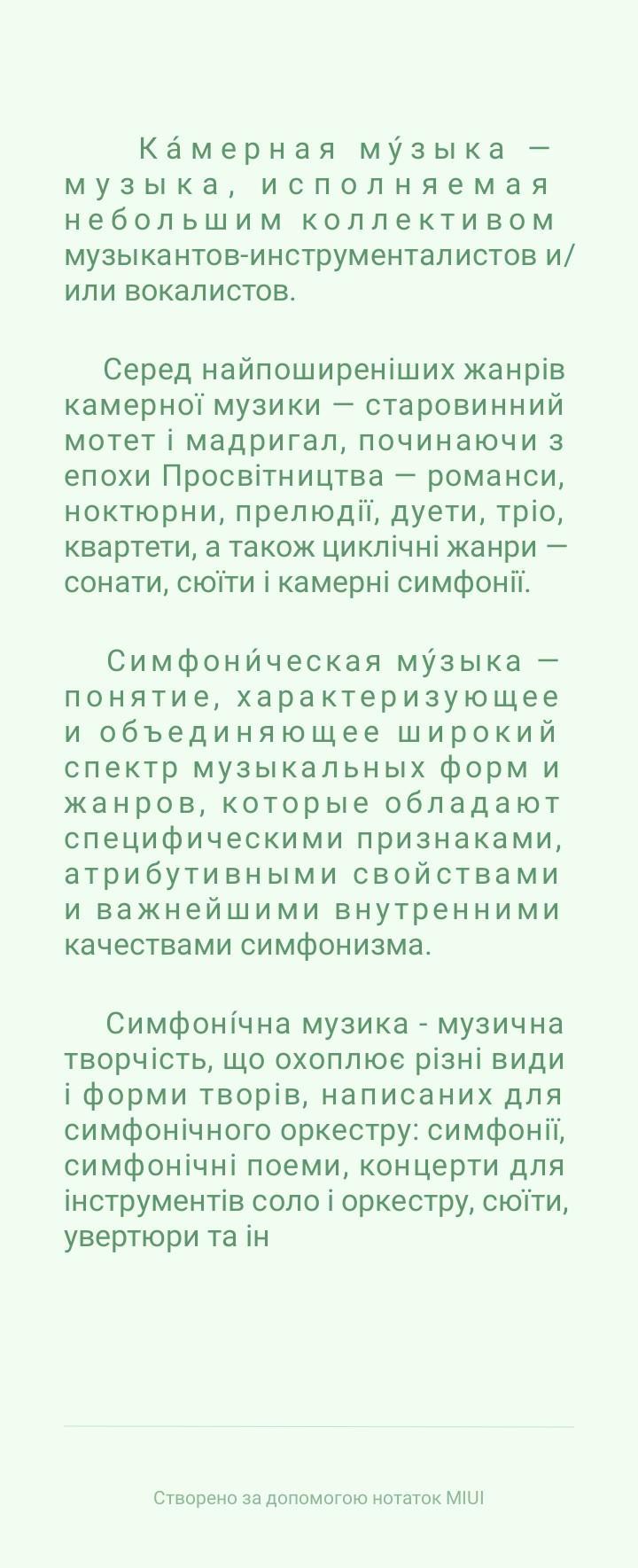 Камерна музика—це вид музичного мистецтва: вокальна, інструментальна, вокально-інструментальна музика, створена для виконання малим складом музикантів у невеликих приміщеннях
