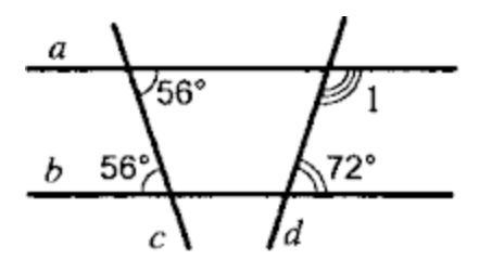 кут1 = 180 - 72 + 56 = 180-128= 52 градуса