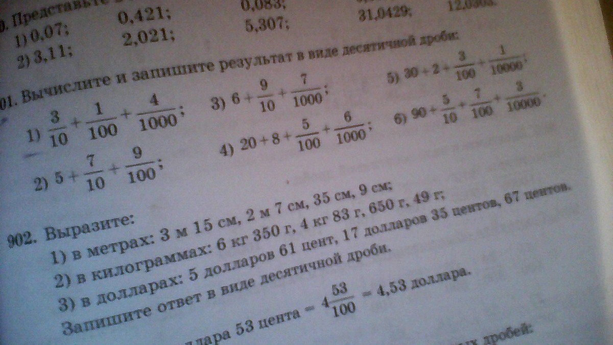 помогите по математике вычислите и запишите результат в виде десятичной дроби под номером 901 второй пример и4 и 6 пожалуйста