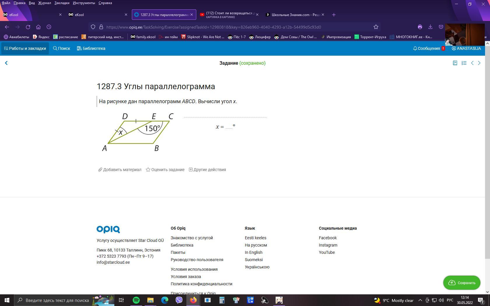 1) Т.к. AD = DE, то треугольник ADE — равнобедренный( по его определению), следовательно, угол DAE = углу DEA = х.