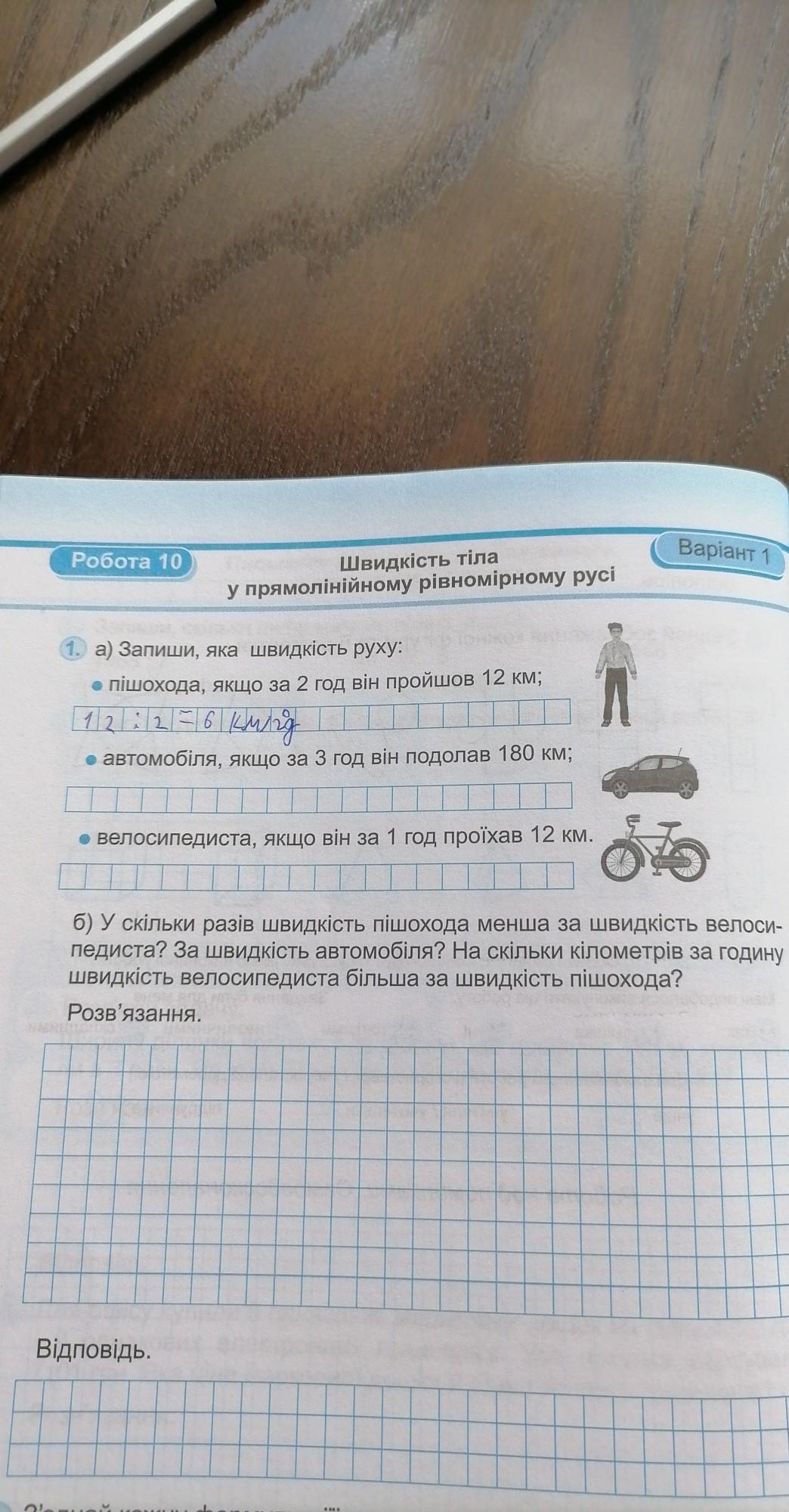 1) 12 : 6 = 2 (раза) - меньше скорость пешехода чем велосипедиста