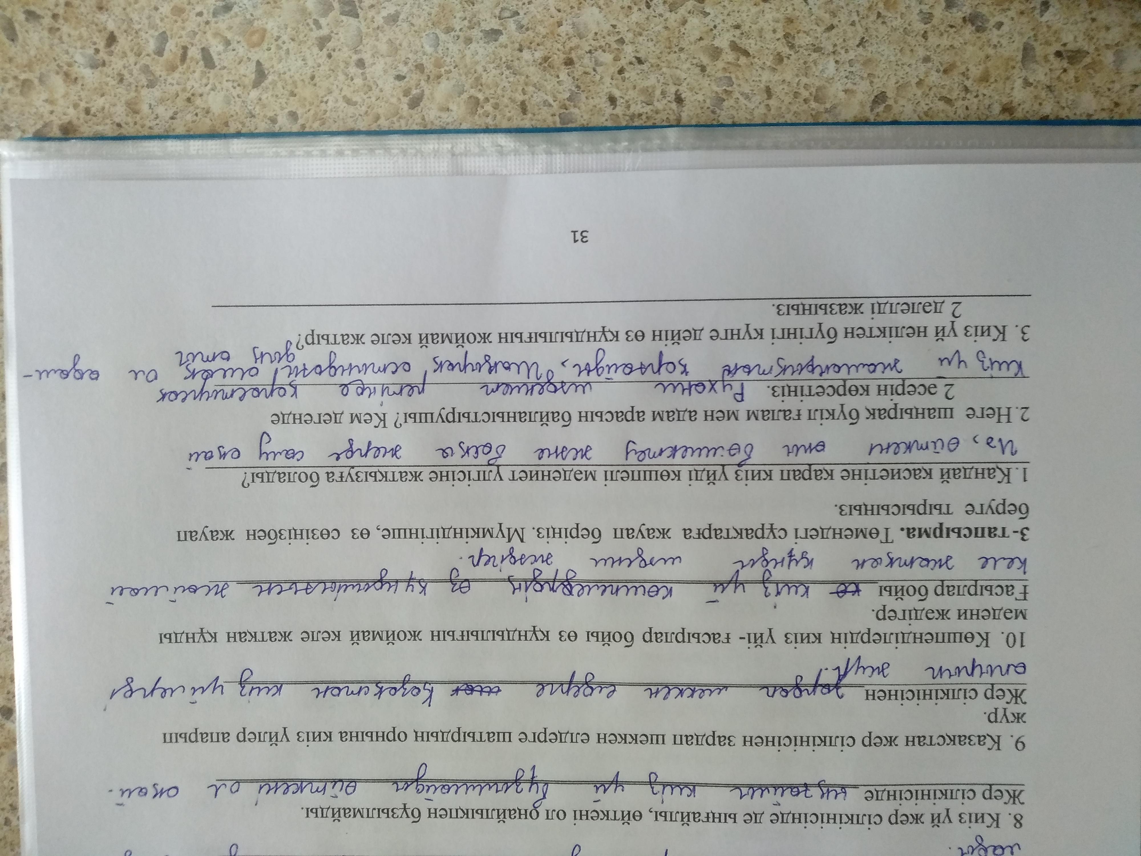 Төмендегі сұрақтарға жауап беріңіз. Мүмкіндігінше, өз сөзіңізбен жауап беруге тырысыңыз.
