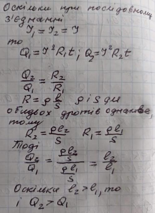 СРОЧНО ДАЮ 75БАЛОВ два мідні дроти однакові за діаметром але різні за довжиною приєднали до джерела струму так як показано на рисунку. у якому дроті виділится більша кількість теплоти?