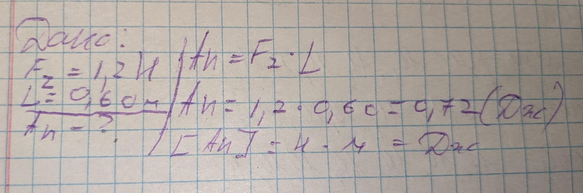 Відомо, що F2=1,2H L=0,60м. Розрахуйте за наявними даними повну виконану роботу Ап=F2*L.
