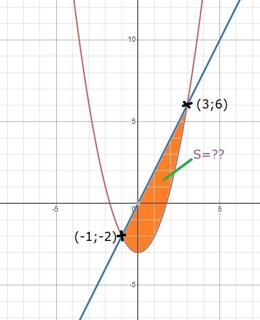 эскиз, точки пересечения и неизвестная площадь показаны на картинке во вложении.