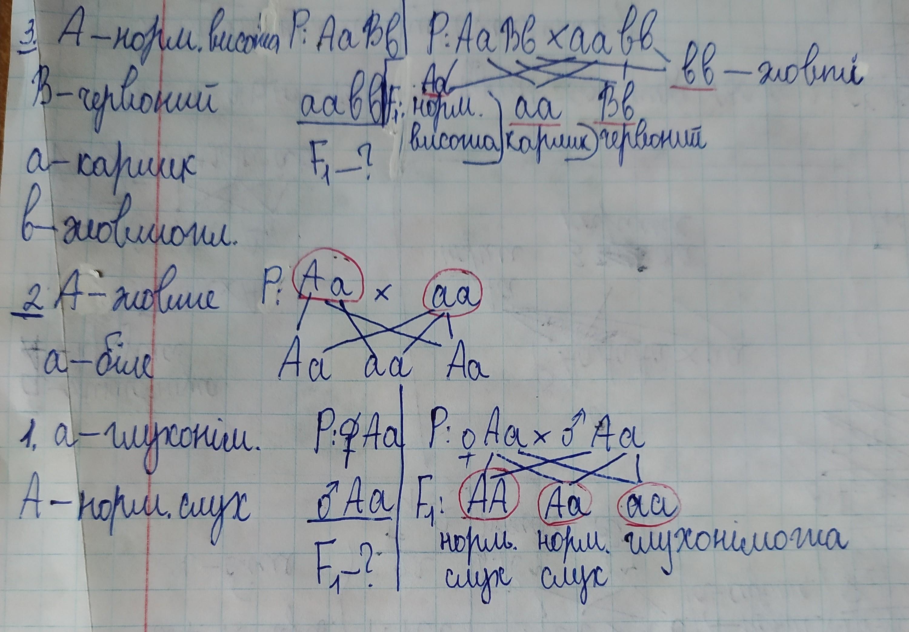 3. У помідорів нормальна висота (А) і червоний колір (В) - домінантні ознаки , а карликовість і жовтоплідність - рецесивні . Які плоди будуть у :