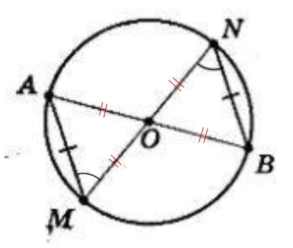 AB-диаметр круга, AM и BN - равные хорды (см. рисунок). Докажите, что прямые AM и BN параллельны.
