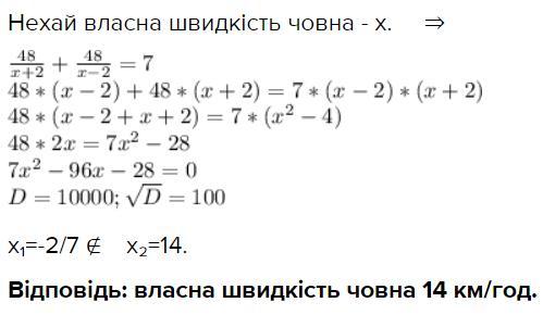 СРОЧНООООООООООООООООООО!!!!!!відстань між пристанями а і Б дорівнює 48 км. моторний човен проходить з А в Б і повертається назад за 7 годин.знайдіть швідкість течії ,якщо власна швидкість човна = 14 км/год