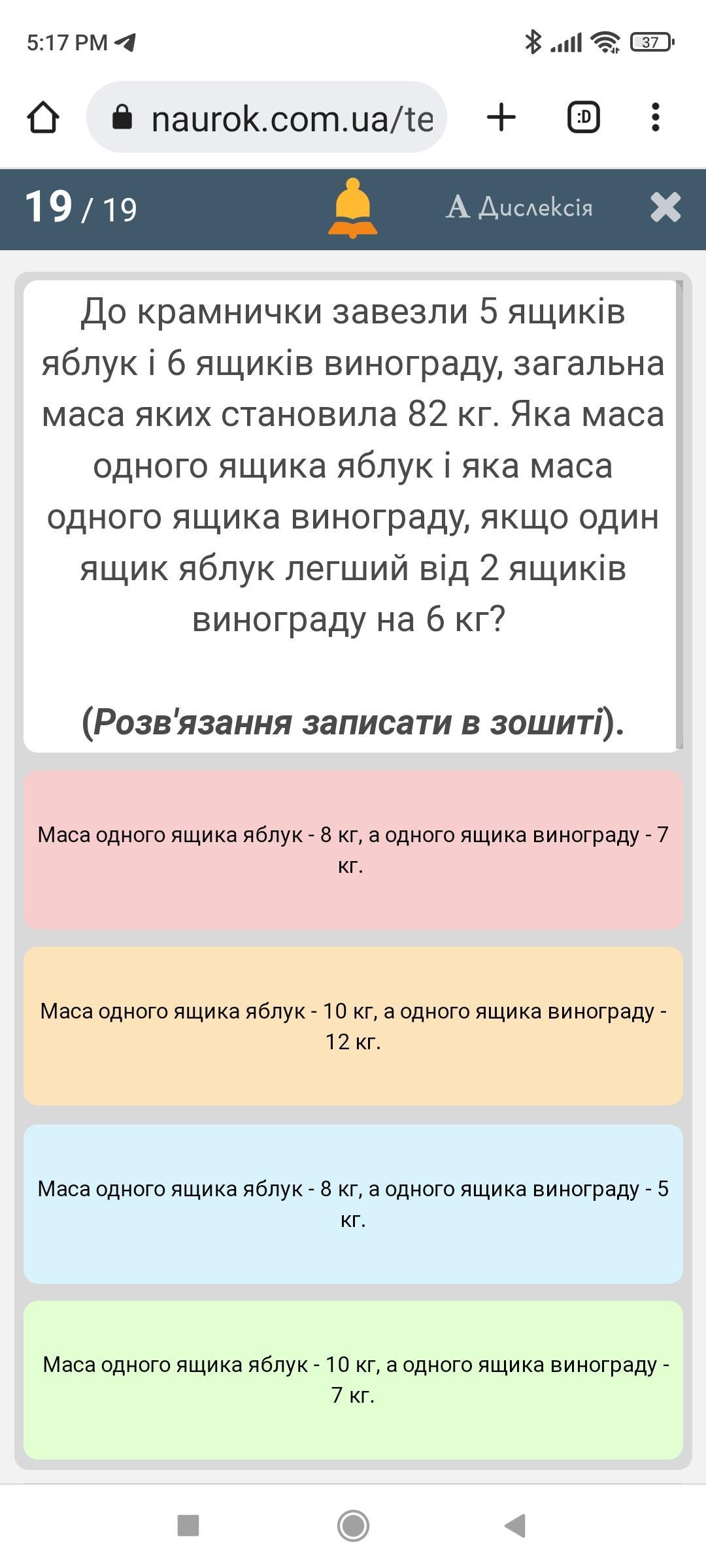 (8+6)/2=7 (кг) - маса одного ящика винограду