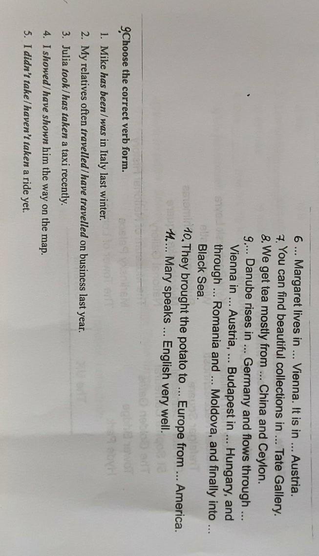 Choose the correct verb form . 1. Mike has was in Italy last winter . 2. My relatives often have travelled on business last year . 3. Julia has taken a taxi recently . 4. I / have shown him the way on the map . 5. I didn't haven't taken a ride yet .