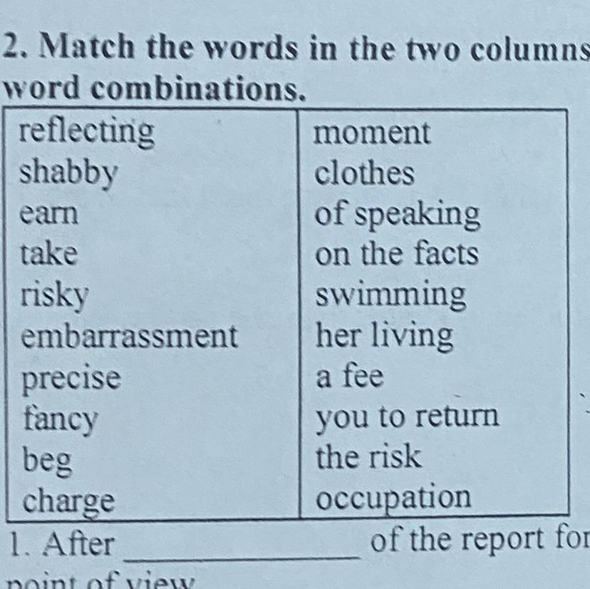 2) Нужно сопоставить слова в двух столбцах и вставить получившиеся словосочетания в предложения.