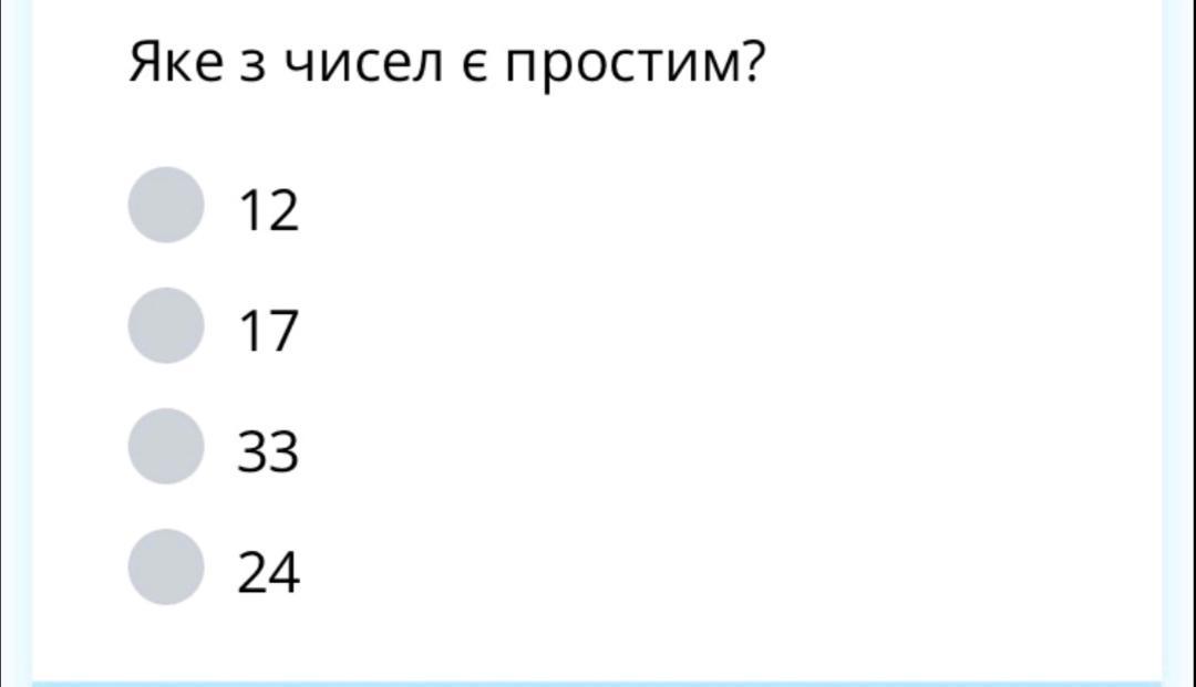 Просте число — це натуральне число, яке має рівно два різних натуральних дільники (лише 1 і саме число). Отже, лише 17 ділиться на 1 і на 17