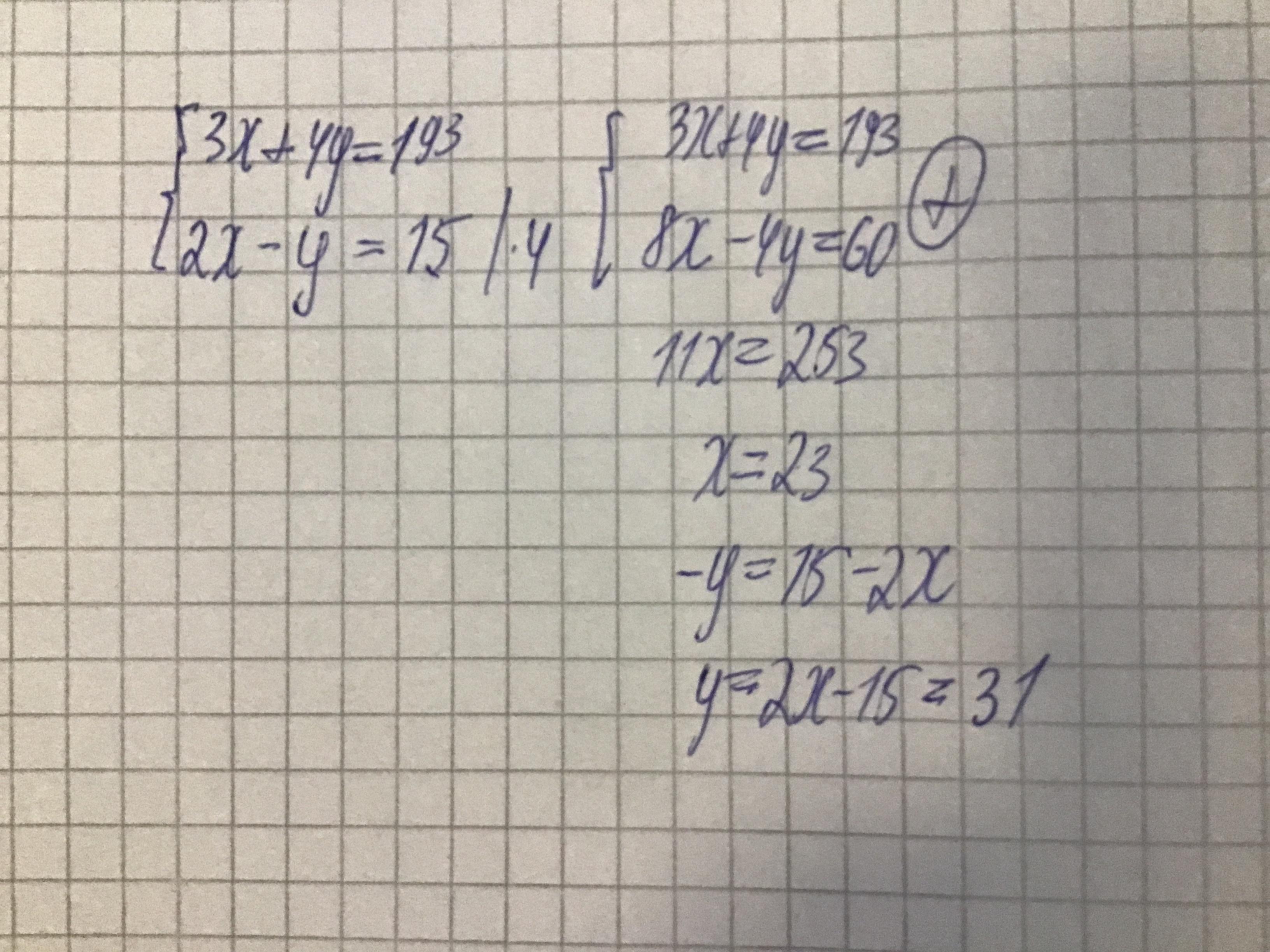 3х + 4у = 193
