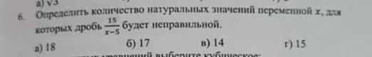 определите количество натуральных значений х для который дробь 15/x-5 будет не правильной
