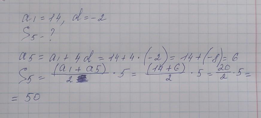 a₅ = a₁ + 4d = 14 + 4 * 2 = 22 мы нашли пятый член