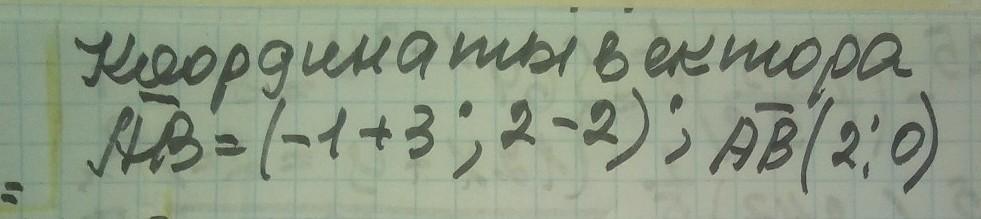 знайти координати вектора AB,якщо A(-3;2)B(-1;2)