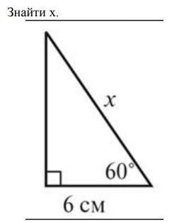 ΔАВС - прямокутний ; ∠С = 90° ; ∠В = 60° ; ВС = 6 см ; АВ = х - ?
