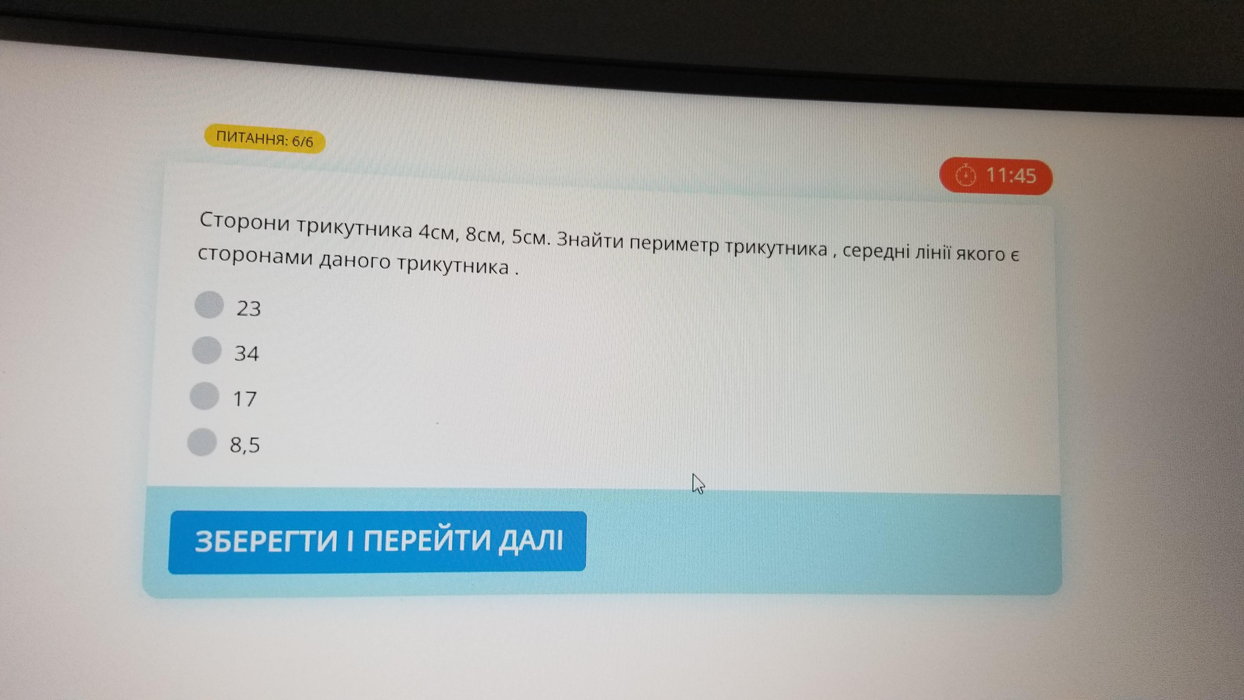 Сторонами трикутника 4см,8см,5см.Знайти периметру трикутника, середні лінії якого є сторонами даного трикутника.