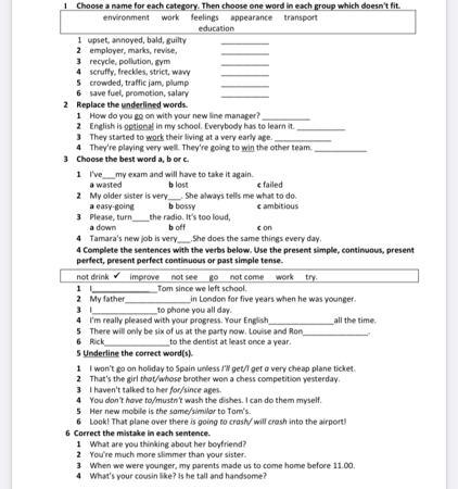 1 Выберите название для каждой категории. Затем выберите в каждой группе по одному слову, которое не подходит. (Лишнее выделила жирным шрифтом)