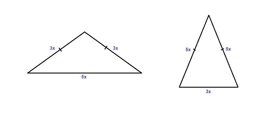 Обычно в задачах, в которых дается отношение отрезков, отношение дается в том же порядке, в котором они перечисляются. То есть основание и боковая сторона относятся как 5 : 3, значит, основание - 5 частей, а боковая сторона - 3 части.