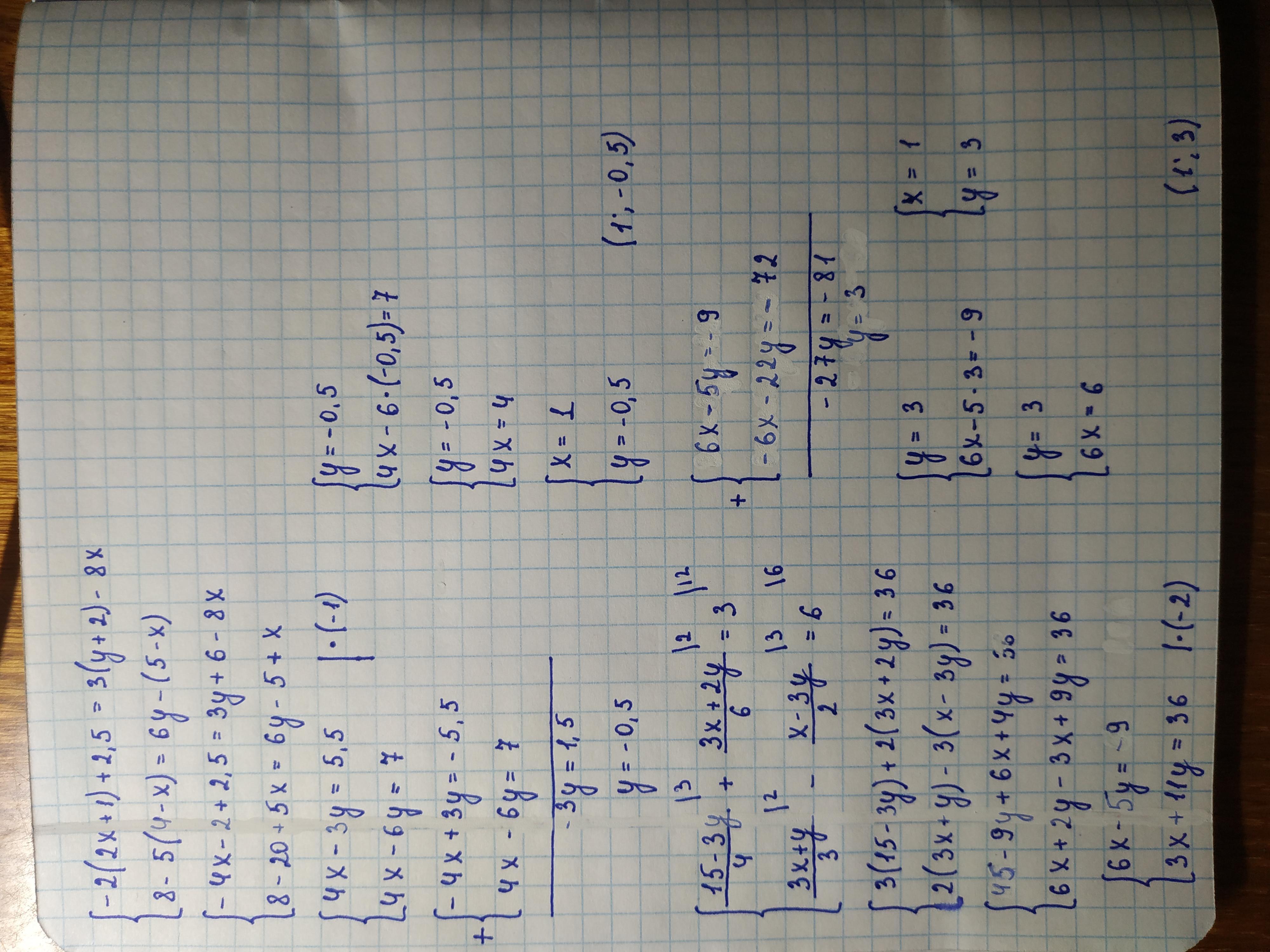 Відповідь: 1. (1;-0,5) 2. (1;3)