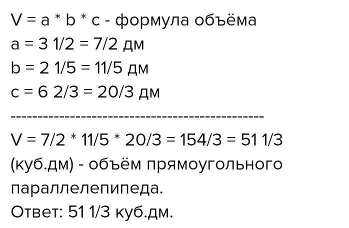 ответ:51 1/3 (куб дм.) _об'ни прямоугольного параллелепипеда.